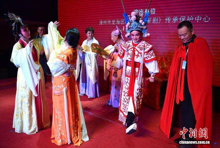 9月10日,“行走中国·2025海外华文媒体漳州行”活动在明代海上丝绸之路的始发港——福建省漳州市龙海古月港启动。12国17家海外华文媒体代表来到著名侨乡漳州参加“行走中国”系列活动。图为海外华文媒体代表在龙海区石码戏馆体验歌仔戏。中新社记者张斌摄