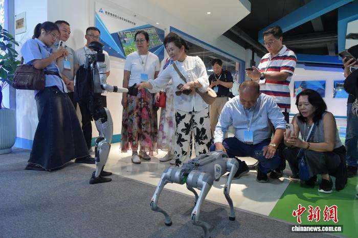11日,“行走中国·2025 海外华文媒体漳州行”活动中,海外华文媒体代表正在和机器人互动。 中新网记者张斌摄