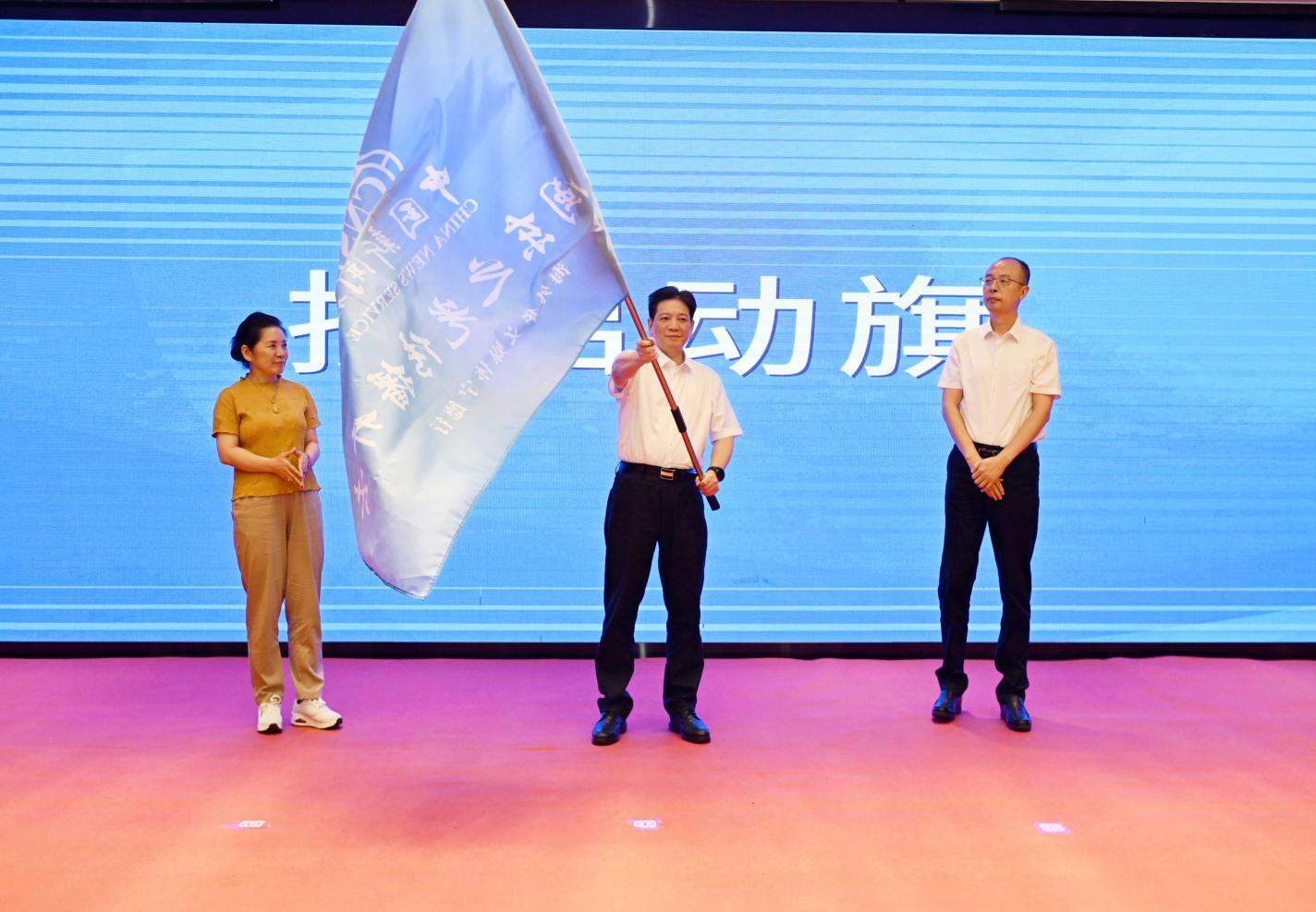 图为授启动旗。吕明摄