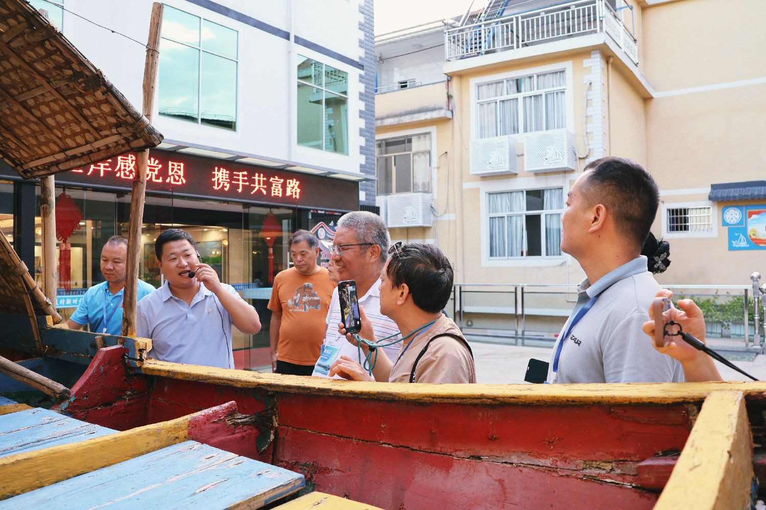海外华文媒体走进下白石镇下岐村聆听村民从“海上漂”到“陆上富”的感人故事。图为合影留念。吕若萱摄