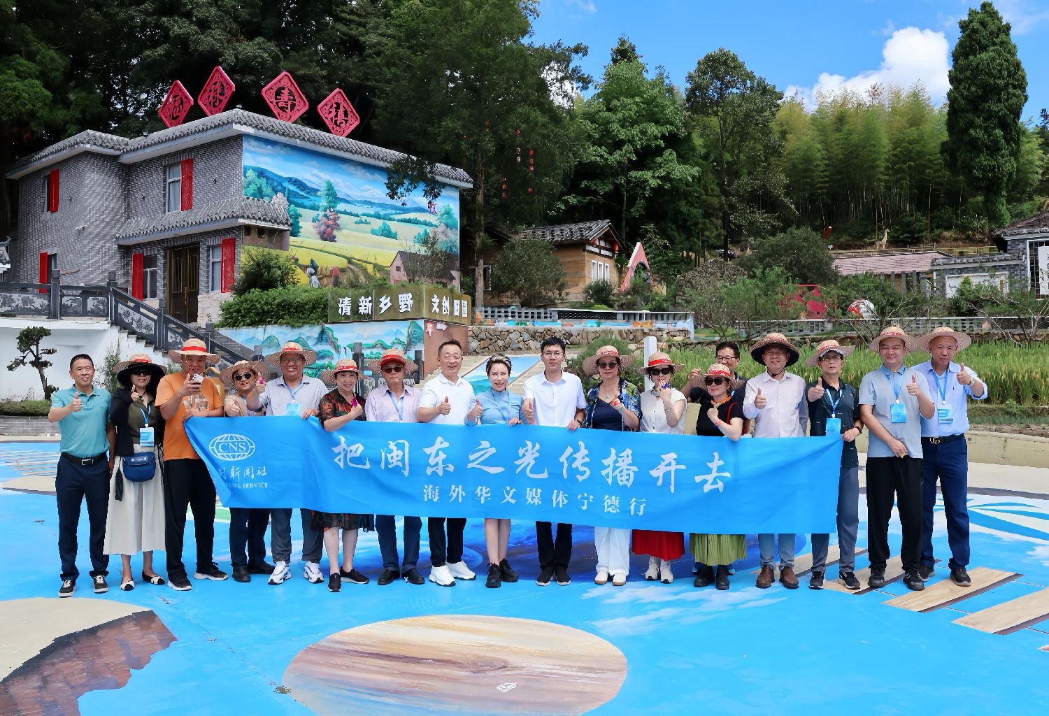 9月16日,海外华文媒体走进城郊乡靴岭尾村,感受非遗文化。图为合影留念。吕若萱摄
