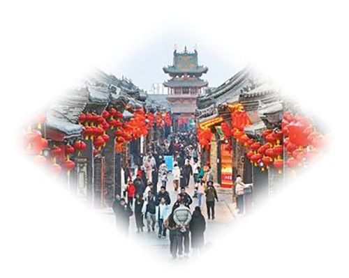 近日,山西省晋中市平遥古城内南大街大红灯笼高悬,节日氛围浓厚。