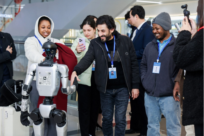 国际创客与宇树机器人互动