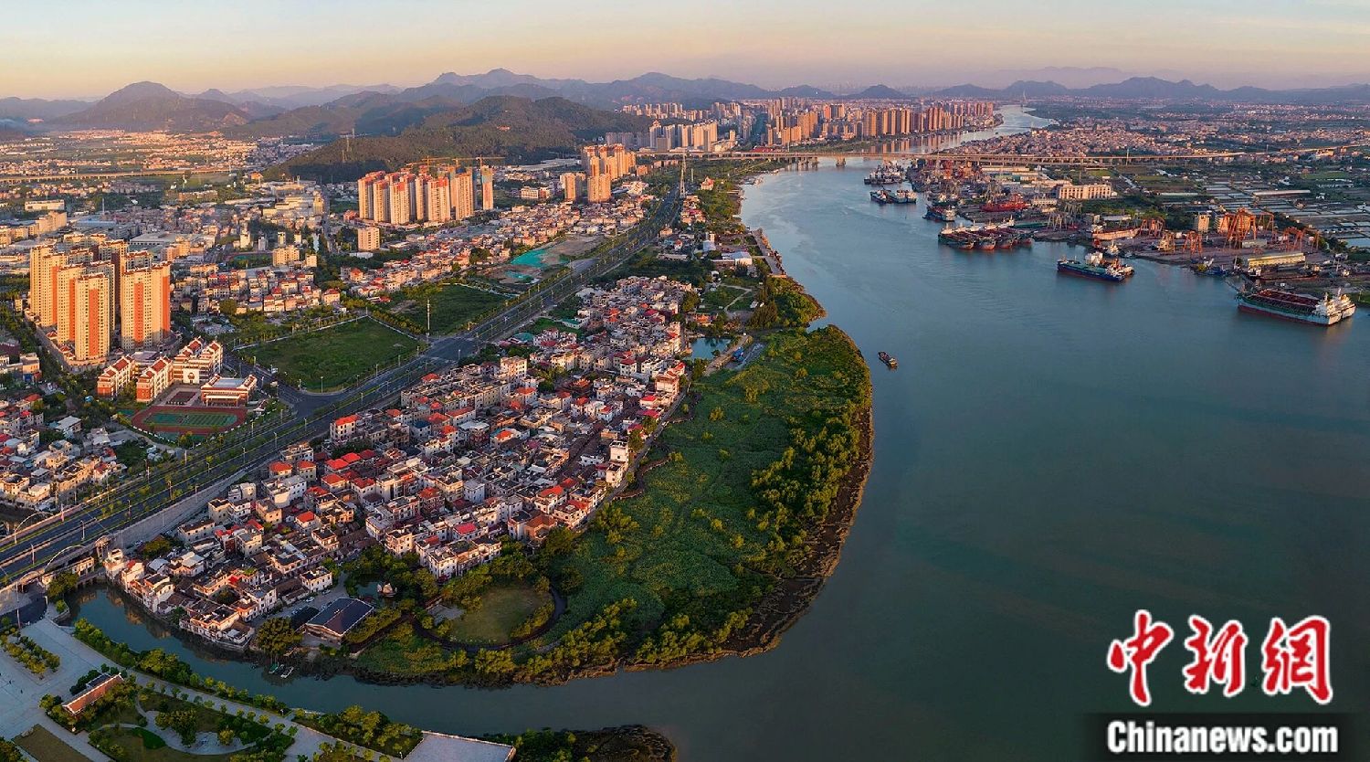 航拍福建省漳州市九龙江畔的城市建设美景。中新社记者 张金川 摄
