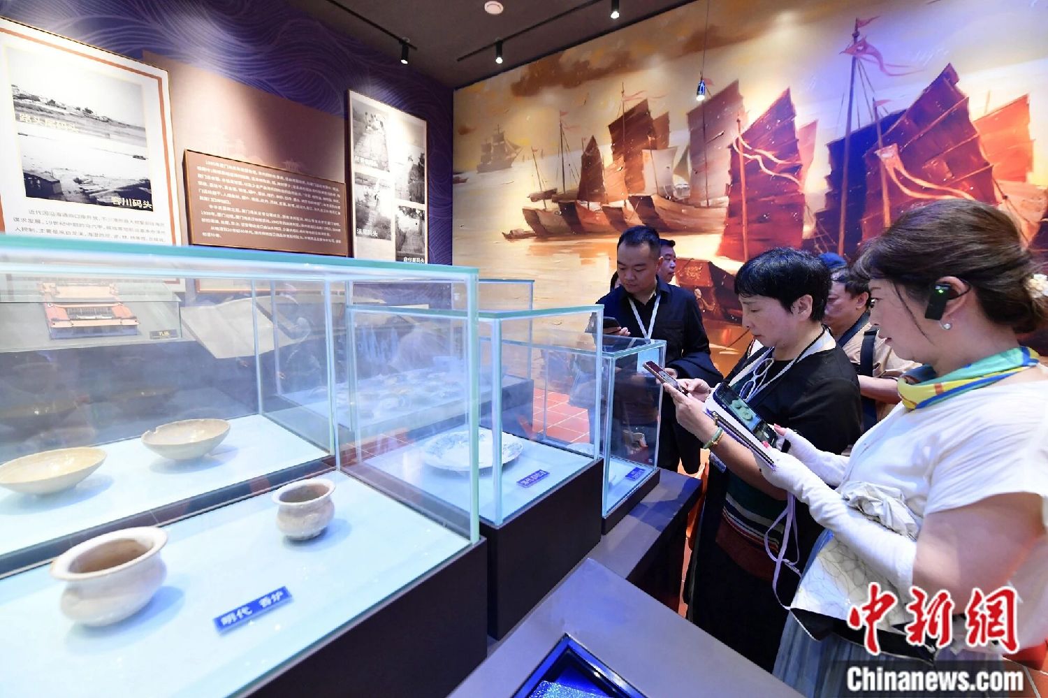 海外华文媒体代表在龙海月港海丝馆参访。中新社记者 张斌 摄