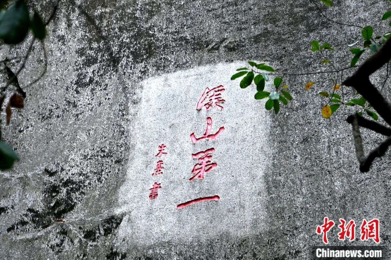龙文云洞岩月峡洞口的峭壁上,800多年前朱熹题写的“溪山第一”四个大字,气势磅礴。中新社记者 张金川 摄